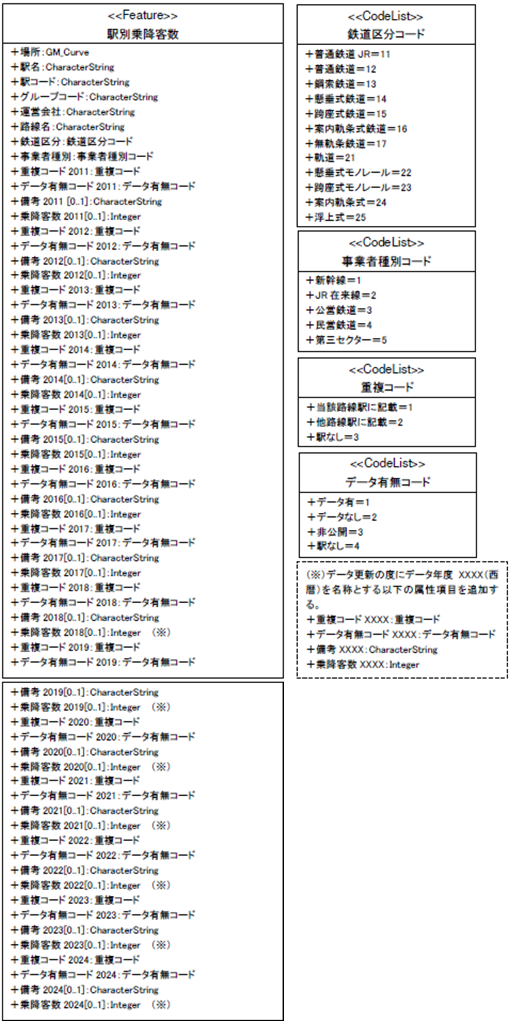 駅の名称 | 文字列型(CharacterString) | ||